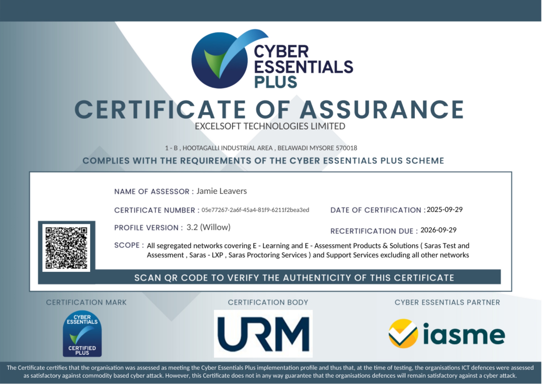 Excelsoft, Mysore has been certified certified with ISO/IEC 27001:2022. The ISMS covers E-Learning and E-Assessment products and solutions, customization projects, and supporting functions including HR, Admin, IT, Finance, BD, and Legal.