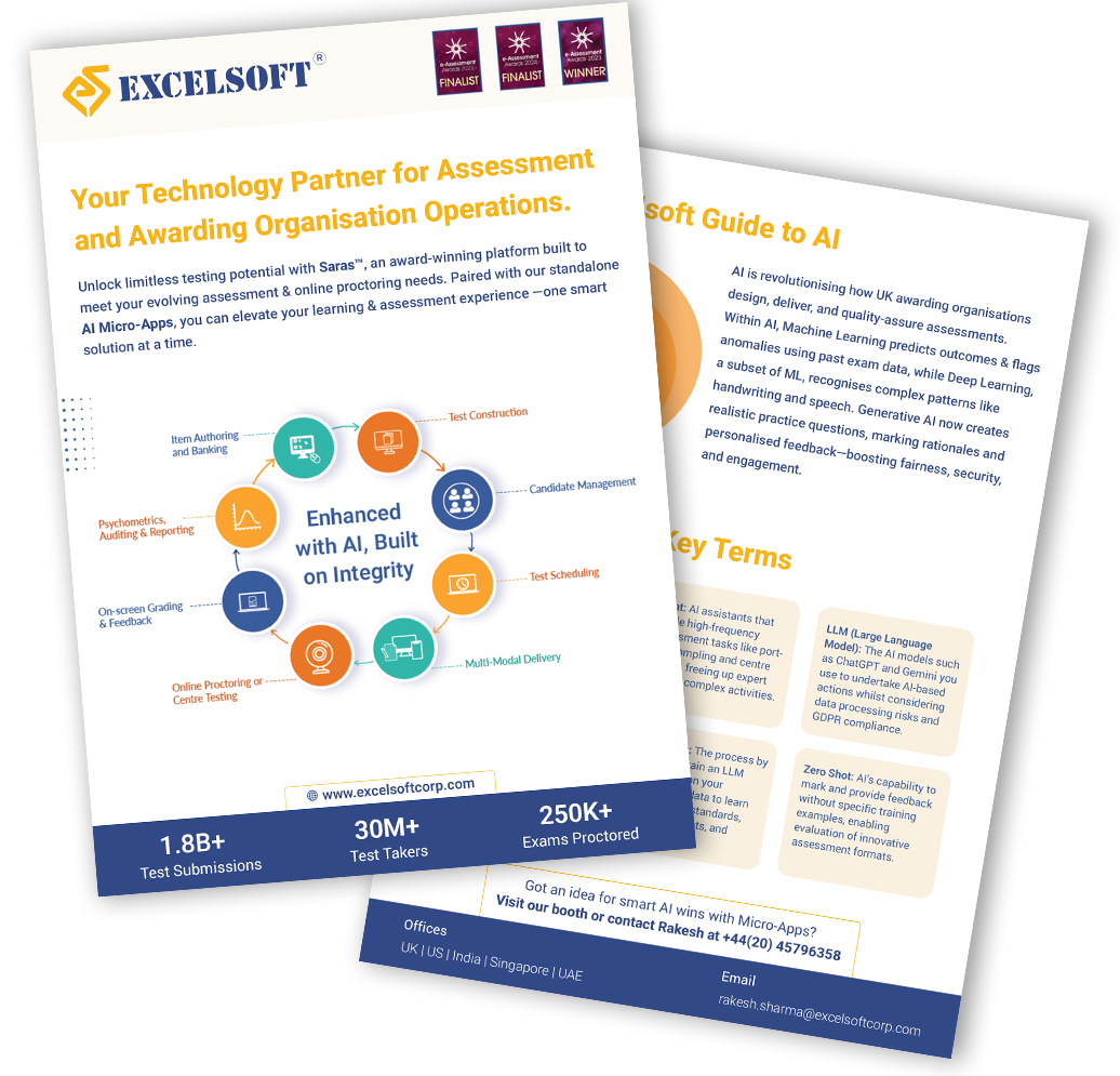 AI is revolutionising how UK awarding organisations design, deliver, and quality-assure assessments. Stay ahead of the curve with Excelsoft’s quick guide — a handy cheat sheet to help you grasp the fundamentals and key terms in AI.